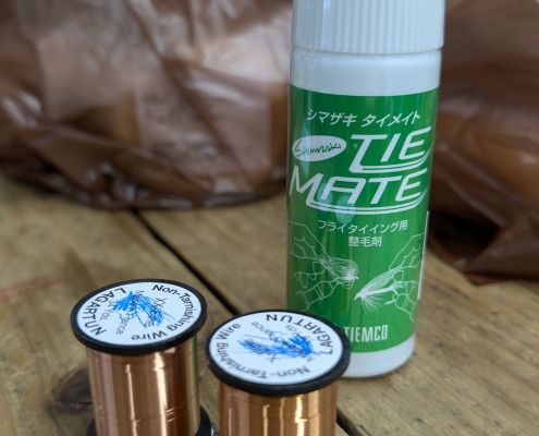 シマザキ「TIE MATE(タイメイト)」フライタイイング専用の整毛剤・接着剤です。羽や毛をきれいにまとめ、仕上がりを整えると同時に、耐久性を高めます。仕上げにひと塗りすることで、長持ちする毛バリが作れます。